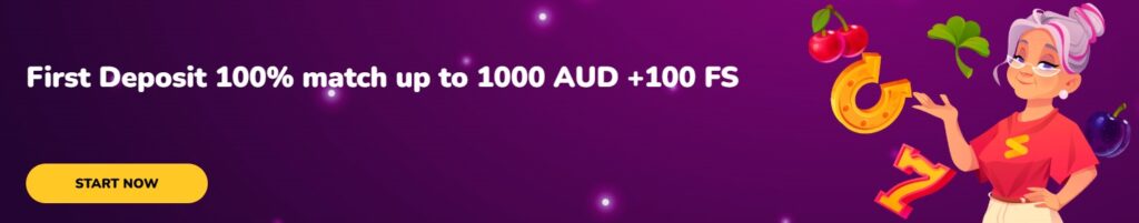 - First Deposit: 100% match up to 1000 AUD plus 100 Free Spins